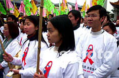 十一月二十四日,一百多位來(lái)自昆明各高等院校的青年志愿者從昆明城郊四個(gè)方位出發(fā),最后在昆明金馬碧雞廣場(chǎng)會(huì)聚。他們沿途宣傳預(yù)防愛(ài)滋病的知識(shí),以減少大眾對(duì)愛(ài)滋病感染者和病人的偏見(jiàn)和歧視。作者:納家驊