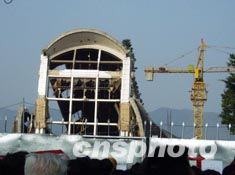 落成于一九五九年的福州火車站大樓二十五日實施爆破拆除失敗,五個相連接的拱形建筑被炸掉四個。煙塵散去,大樓的一部分仍巍然屹立,立柱上埋入的炸藥沒有引爆。作者:華小銳