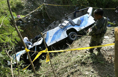 圖:菲律賓一公共汽車墜入溝壑 造成33人死亡