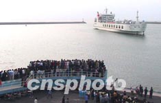 記者看到,當(dāng)下午四點(diǎn)十分龐大的粵海鐵一號(hào)緩緩得開(kāi)進(jìn)南港港池的時(shí)候,一抹陽(yáng)光緩緩地照射在平靜的港灣,等候在碼頭上的數(shù)千名海南百姓發(fā)出了熱情的歡呼聲……海南八百萬(wàn)人民的跨海夢(mèng)就要圓了。