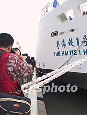 潔白的“粵海鐵一號”,遠(yuǎn)看與海南百姓見識多了的海輪并無二致:一百六十五點(diǎn)四米的船身,顯得非常修長。進(jìn)入港池的巨輪向左緩緩轉(zhuǎn)向,忽然人群中發(fā)出一陣歡呼,碼頭上的鞭炮開始熱烈爆響——因為,在船的側(cè)身,巨大的中鐵標(biāo)志終于展現(xiàn)在海南人民眼前。從此,坐著火車上北京不再是難以實現(xiàn)的夢想。