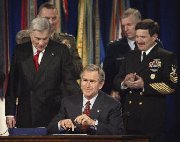 他再次警告,伊拉克拒絕履行聯(lián)合國安理會(huì)決議的后果將是戰(zhàn)爭,美國將會(huì)在危險(xiǎn)增大之前采取先發(fā)制人的行動(dòng)。