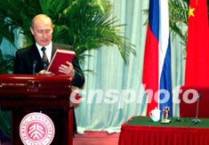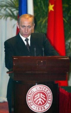 中新網(wǎng)北京12月3日電(記者齊彬)俄羅斯總統(tǒng)普京今天上午在中國國家主席江澤民的陪同下,在北京大學(xué)校長辦公樓會議廳發(fā)表演講,并回答北大學(xué)子的提問。