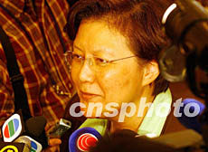 香港特別行政區(qū)第十屆全國人民代表大會(huì)代表選舉會(huì)議三日在香港舉行,會(huì)議選出36名香港特別行政區(qū)第十屆全國人大代表。圖為選舉后范徐麗泰女士接受媒體采訪。錢興強(qiáng) 攝