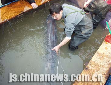 中新網(wǎng)南京12月12日電(記者陳光明 丁東升)世界上唯一一頭人工飼養(yǎng)活著的白鱘在南京被發(fā)現(xiàn)后,引起了社會(huì)各界極大的關(guān)注。今天下午,記者在白鱘救護(hù)現(xiàn)場(chǎng)南京漁政碼頭,采訪了中國(guó)水產(chǎn)科學(xué)院長(zhǎng)江水產(chǎn)研究所的鱘類研究權(quán)威危起偉教授。