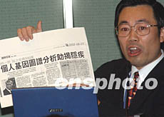 香港醫(yī)學分子診斷中心等機構十二月十二日在香港舉行“DNA與健康”新聞發(fā)布會。圖為香港大學生物系榮譽副教授譚榮安博士在會上介紹基因檢測技術的應用。錢興強 攝