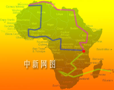 其中,作為學(xué)者的葛劍雄將跟隨攝制組的北線(圖中紅線)隊伍,采訪路線為:摩洛哥(卡薩布蘭卡)——(途經(jīng)阿爾及利亞)——突尼斯——利比亞——埃及——(逆尼羅河而上)——蘇丹——埃塞俄比亞——肯尼亞——烏干達————坦桑尼亞,共八個國家。