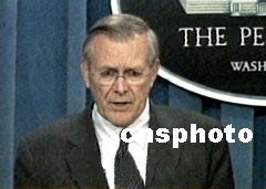 美國國防部長拉姆斯菲爾德今天也發(fā)表講話指出,十枚攔截導(dǎo)彈看上去好像微不足道,對(duì)于整體導(dǎo)彈防御計(jì)劃來說,這是萬里長征的第一步。他稱:“美國目前沒有任何能力阻擋世界任何地方發(fā)射來的;蜿懟鶎(dǎo)彈!