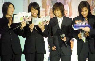 中新網(wǎng)12月19日電 以《流星花園》走紅全亞洲的臺(tái)灣超人氣團(tuán)體“F4”,在新力唱片公司的力捧下,于18日下午移師香港,舉行新專輯《煙火的季節(jié)》發(fā)表會(huì)。