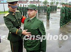 今年入伍的蘇州某大學(xué)機(jī)電專業(yè)學(xué)生胡斌在泉州市公安邊防支隊(duì)輪訓(xùn)隊(duì)接受訓(xùn)練。大學(xué)生保留學(xué)籍、攜筆從戎成為今年邊防新兵的一大亮點(diǎn)。作者:徐喻