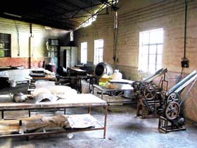 走進車間后,發(fā)現有3個男工在往烘烤爐填煤,黑色的煤沫四外飛揚,飛揚的煤沫也飛進了大鍋里煮的煎堆上。地板上黑乎乎的,沒有一處是干凈的。
