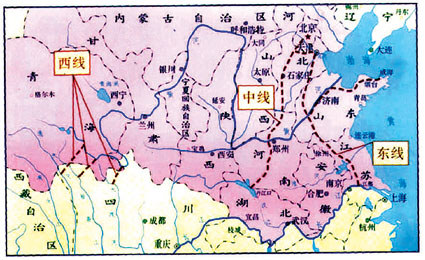 據(jù)我國的地形地貌特點、水土資源分布與組合狀況以及經(jīng)濟社會發(fā)展對水資源的要求,南水北調(diào)工程共分東線、中線、西線三條調(diào)水線,從而形成與長江、黃河、淮河和海河相互聯(lián)接的“四橫三縱”水網(wǎng)格局,達到我國水資源南北調(diào)配、東西互濟的優(yōu)化配置目標。據(jù)介紹,這三條線工程最終建成后,到2050年調(diào)水總量規(guī)模為448億立萬米,接近于在黃淮海平原和西北部地區(qū)增加一條黃河的水量,可基本改變我國北方地區(qū)水資源嚴重短缺的狀況。
