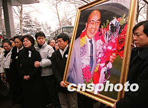 李瑞環(huán)、劉云山、丁關根等到八寶山殯儀館向袁世海遺體作最后告別。