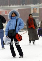 圖:少女全副裝備雪中游覽天安門(mén)廣場(chǎng)
