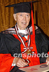 中新社香港十二月二十三日電 (記者陶社蘭)八十七歲的著名僑領、香港企業(yè)家許東亮先生以其愛國愛鄉(xiāng)的事跡和對僑教公益事業(yè)所做的積極貢獻,獲頒華僑大學名譽博士學位。今天,國務院僑務辦公室副主任、華僑大學董事會副董事長劉澤彭在此間為許東亮先生頒授學位。