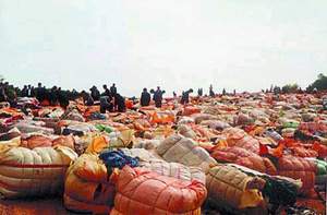 連日來,陸豐、碣石等三級黨委、政府針對陸豐碣石鎮(zhèn)瘋狂走私洋垃圾衫一事,積極組織包括海關(guān)、邊防、公安、工商等專項(xiàng)隊(duì)伍,出動1000余人次,對陸豐碣石鎮(zhèn)的所有市場、村莊等采取逐家清查的地毯式清理。到昨天為止,共查獲洋垃圾衫達(dá)1200捆、近100噸。