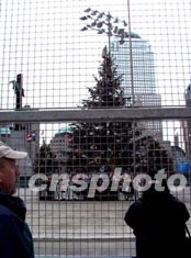 圣誕之際,美國在紐約世貿(mào)廢墟上矗立起高大的圣誕樹,寄托對二千多個無辜生命的悼念之情。作者:趙海燕