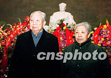 毛澤東的機(jī)要秘書張玉鳳(右)等毛澤東生前身邊工作人員和毛澤東的女兒李敏到北京毛主席紀(jì)念堂獻(xiàn)花。