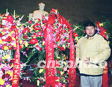 正在解放軍軍事科學(xué)院攻讀博士學(xué)位的毛澤東的孫子毛新宇,代表父母到北京毛主席紀(jì)念堂敬獻(xiàn)花籃。