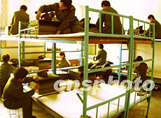 北京郊區(qū)的解放軍某新兵連女兵二十六日在緊張地整理內(nèi)務(wù),以做好元旦前突擊檢查的準(zhǔn)備工作。解放軍指揮機(jī)關(guān)每逢年節(jié)都要對下屬部隊進(jìn)行檢查,以確保部隊秩序井然。作者:宋吉河