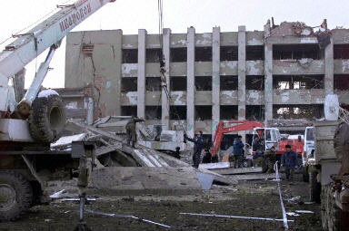 12月27日,車(chē)臣首府格羅茲尼的政府大樓接連發(fā)生兩起自殺汽車(chē)炸彈爆炸事件,造成至少57人死亡,120人受傷,大樓受到嚴(yán)重的損毀。