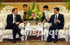 中共中央總書記、國家副主席胡錦濤三十日在北京人民大會堂會見德國總理施羅德。作者:毛建軍