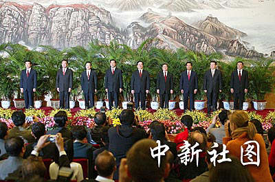 圖:新一屆中共中央政治局常委產(chǎn)生