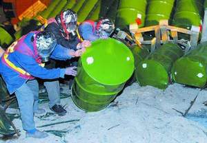 一名值勤的警官介紹,甲基吡啶為一種劇毒的化學(xué)物品,一旦發(fā)生泄漏,聞到這種氣味不久便會出現(xiàn)頭昏等癥狀,所以進(jìn)入現(xiàn)場的搶險人員都要戴罩甚至防毒面具。