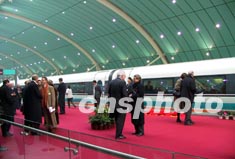圖為中德兩國總理在龍陽路車站為上海磁浮列車通車剪彩。