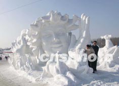 新年長春凈月潭冰雪旅游節(jié)的冰雪游樂園共設(shè)立三十六個(gè)景區(qū),雪雕作品《春的使者》好似白雪仙子。作者:韓丹