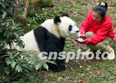 今天是二00三年的第一天,連日來的陰雨天氣被一早就灑下的柔和冬陽一掃而光。古木參天、綠竹猗猗的福州熊貓世界,沐浴著金雨般的陽光,顯得分外妖嬈,洋溢著一派喜氣。數(shù)百名海內(nèi)外各界人士在一片歡樂的軍號鼓樂聲中,為高齡達二十七歲的大熊貓“青青”和二十三歲的“巴斯”祝賀新年。