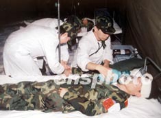 圖:解放軍演練野戰(zhàn)救護(hù)