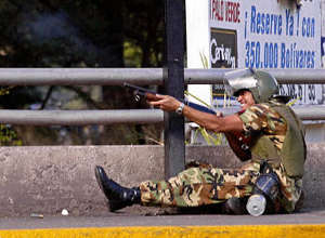 委內(nèi)瑞拉首都加拉維斯再次出現(xiàn)大規(guī)模示威游行,同時查韋斯總統(tǒng)支持者和反對者之間發(fā)生暴力沖突。警察向示威者發(fā)射橡皮子彈、施放催淚瓦斯,示威者則投擲石塊、瓶子等回?fù)。目前已有兩人被打死,多人受傷?/p>