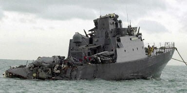 中新網(wǎng)1月4日電 一艘新加坡海軍軍艦“英勇號(hào)”,昨晚11時(shí)35分在距離白礁島西北0.8公里處,遭一艘荷蘭注冊(cè)的箱運(yùn)船擊撞,導(dǎo)致8人受傷,4名女兵仍受困軍艦內(nèi)。