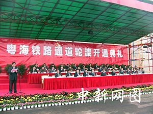 今天上午,中國(guó)鐵道部、廣東省和海南省舉行了隆重的通車(chē)儀式。中共中央政治局常委、國(guó)務(wù)院副總理吳邦國(guó)以及鐵道部、交通部、經(jīng)貿(mào)委、廣東、海南的領(lǐng)導(dǎo)在海口碼頭等候輪渡靠岸,并頻頻向火車(chē)輪渡招手。