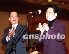國務(wù)院副總理錢其琛八日在北京會(huì)見“全國僑辦主任會(huì)議”的與會(huì)代表,新任國僑辦主任陳玉杰(右)參加了會(huì)見。作者:滿會(huì)喬
