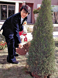 中新網(wǎng)1月9日電 香港藝人成龍最近又與英皇集團(tuán)合作,于大埔投資興建豪宅“龍成堡”。昨日,成龍到新樓盤主持植樹及打手印儀式,并透露他也正計(jì)劃花上二億元興建一幢堡壘式豪宅。