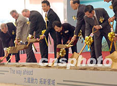 造價約港幣100億的九廣鐵路落馬洲支線動土儀式一月九日在香港舉行。圖為主禮嘉賓主持動土儀式。錢興強 攝