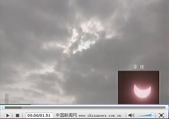 中新網(wǎng)7月22日電 7月22日,500年一遇的日全食奇觀引發(fā)了網(wǎng)絡(luò)上的一次盛大“天文聯(lián)歡”。來自全國各地的網(wǎng)友自發(fā)組成了“直播團隊”,以網(wǎng)絡(luò)為平臺發(fā)布圖文,記錄自己觀測此次天文奇觀的情況?上旃蛔髅溃鄠省市天陰云厚,觀測活動受到了嚴重影響。一位江蘇網(wǎng)友就笑稱:“看來咱們得爭取再活500年,到時候再觀測吧!” - 中新網(wǎng)記者重慶報道:2009-7-22 09:32