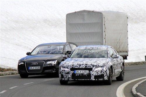 近日奧迪A7和新一代A8同時出現(xiàn)在奧地利的高速公路上,雖說A7的測試已經(jīng)進入尾聲并且即將發(fā)布,但是嚴謹?shù)牡聡艘琅f將這臺全新四門Coupe包裹的嚴嚴實實的,不過就算是這樣,路試車輛還是留下了一些蛛絲馬跡。