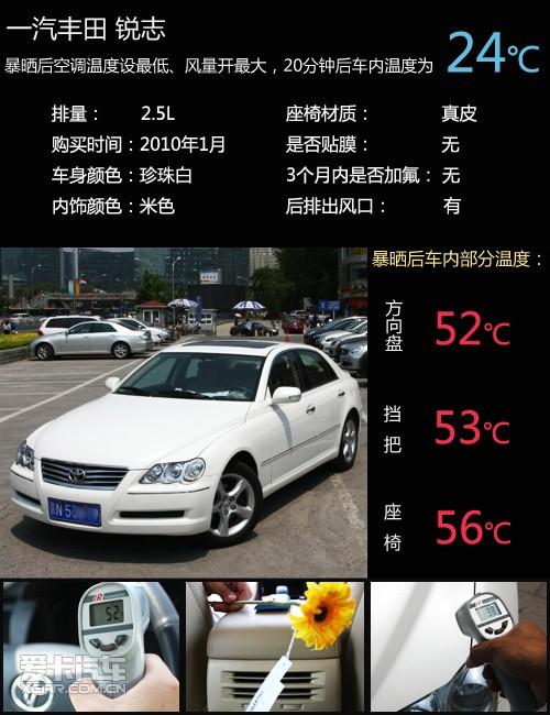 這臺(tái)今年1月份提的銳志空調(diào)涼得很快,運(yùn)行時(shí)發(fā)動(dòng)機(jī)發(fā)出的噪音很低,真想坐在里面不出來。珍珠白車漆要比黑色車溫度低很多,總體來說表現(xiàn)不錯(cuò)。