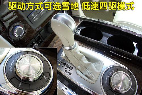也許看到這里你仍然覺得這確實非常像一款豪華轎車,但是這個金屬材質(zhì)的旋鈕還是清晰的告訴你它真的是一款SUV車型。似乎在你沒有仔細閱讀使用前,你會覺得這個旋鈕似曾相識,但是它的作用卻是驅(qū)動轉(zhuǎn)換的操作系統(tǒng)?梢运矔r切換高速四驅(qū)、低速四驅(qū)及雪地三種模式,如果你覺得這樣很繁瑣,也可以將其調(diào)節(jié)到AUTO自動模式下,它也會根據(jù)實時路況做出聰明的反應。
