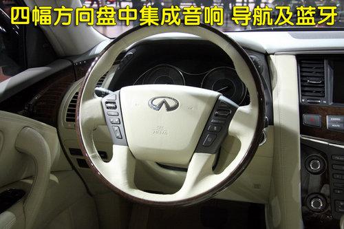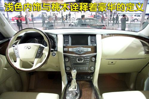 在來到英菲尼迪QX56內(nèi)室前,我就已經(jīng)想到了它會非常豪華,而眼前所看到的與先前的想法很一致。如果將內(nèi)室的圖片先行解析,我們很難想到這是一款SUV車型,而它更像是一款豪華轎車。內(nèi)飾全部由米色的真皮與桃木充斥著,溫暖與豪華也是QX56所想要的。白色的刻度、指針與藍色的裝飾背光組合的儀表盤,給略帶中庸的內(nèi)飾增添了一分時尚感。