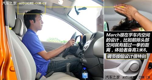在March瑪馳的講解會中,廠家人員多次提到了它的空間。作為一款小型車,這個問題很可能會決定產品的競爭力,畢竟個兒頭擺在那,誰會更好的解讀空間利用率,誰就必然有優(yōu)勢!通過親身體驗,瑪馳在這一項目中還是展示出了心得,比如在頭部空間方面。