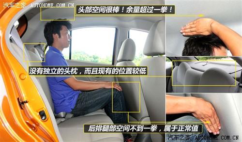 無論是前排還是后排,該車的頭部空間真是沒的挑了,全部超過一拳的余量完全可以容納身高超過1米8的乘客;然而,后排腿部方面則比較普通,不到一拳的空間屬于正常,所以說還是踏踏實實讓我來當模特做個示范吧……