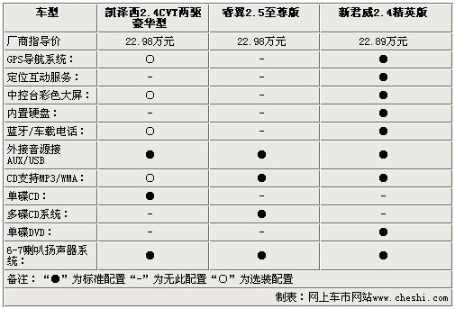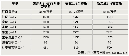 影音系統(tǒng)方面,三款車都為使用者提供了多揚(yáng)聲器的配置,除了AUX/USB接口外,凱澤西還配備了單碟CD,而睿翼則配備了更為便利的6碟CD系統(tǒng),新君威為單碟DVD。通過以上參數(shù)配置方面的比較,對(duì)于三款22.98萬左右的中級(jí)車,配置方面基本打成平手,僅在一些細(xì)節(jié)方面有所出入,不過動(dòng)力方面凱澤西確是實(shí)實(shí)在在的戰(zhàn)勝了睿翼和新君威,幾乎將2.4L引擎的動(dòng)力發(fā)揮到了極致。