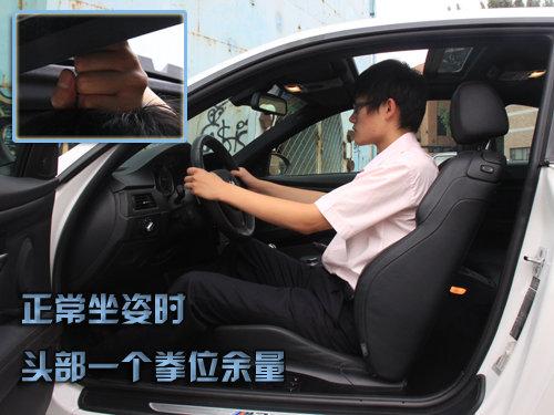 M3基于3系轎跑版打造,車身尺寸方面在原有的基礎上做出了更加符合跑車個性的處理。車三圍是4615mm*1804mm*1424mm,軸距為2761mm,整個尺寸都要比普通版進口3系大一號,起初因為兩門設計產(chǎn)生的對空間的擔心有所動搖,測試者178CM。