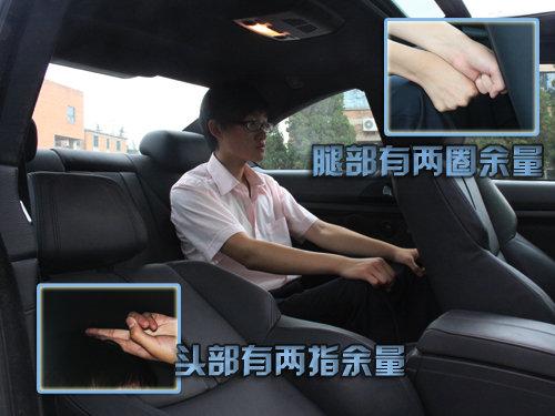 測試者座椅調整合適以后,正常坐姿時頭部有一個拳位余量,腿部活動自由,沒有特別拘束的感覺;后排空間表現(xiàn)良可,測試者正常坐姿下,腿部空間表現(xiàn)很好,有兩個拳位余量,頭部表現(xiàn)一般,有兩指空間,測試者稍有壓迫感。(測試者身高178CM)