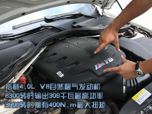 看完了外觀和內(nèi)飾,M3透露出來的“偽”氣質(zhì)似乎比較隱蔽,影影綽綽。現(xiàn)在咱們看看動(dòng)力的部分。M3搭載4.0L V8自然吸氣發(fā)動(dòng)機(jī),應(yīng)用Valvetronic (電子氣門技術(shù))、DME數(shù)字式電子伺控系統(tǒng)、雙凸輪軸可變氣門正時(shí)控制系統(tǒng) (Bi-VANOS)等電子控制技術(shù),8300轉(zhuǎn)時(shí)輸出309千瓦最高功率,3900轉(zhuǎn)時(shí)擁有400N.m最大扭矩。爆裂的孤狼性格此刻終于暴露了。