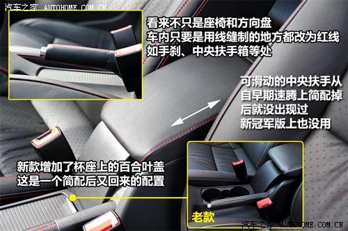 內(nèi)飾的變化主要有兩方面,一是將車內(nèi)真皮的縫合線從白色變成紅色,與整體黑色的內(nèi)飾結(jié)合,運動效果更明顯。另一處實用性更強的變化就是將真皮座椅進行打孔處理,現(xiàn)在已經(jīng)進入夏天,將會有更多的新冠軍版車主享受到這項變化所帶來的好處。增加的實在配置還有定速巡航,少說也是幾百元的成本。